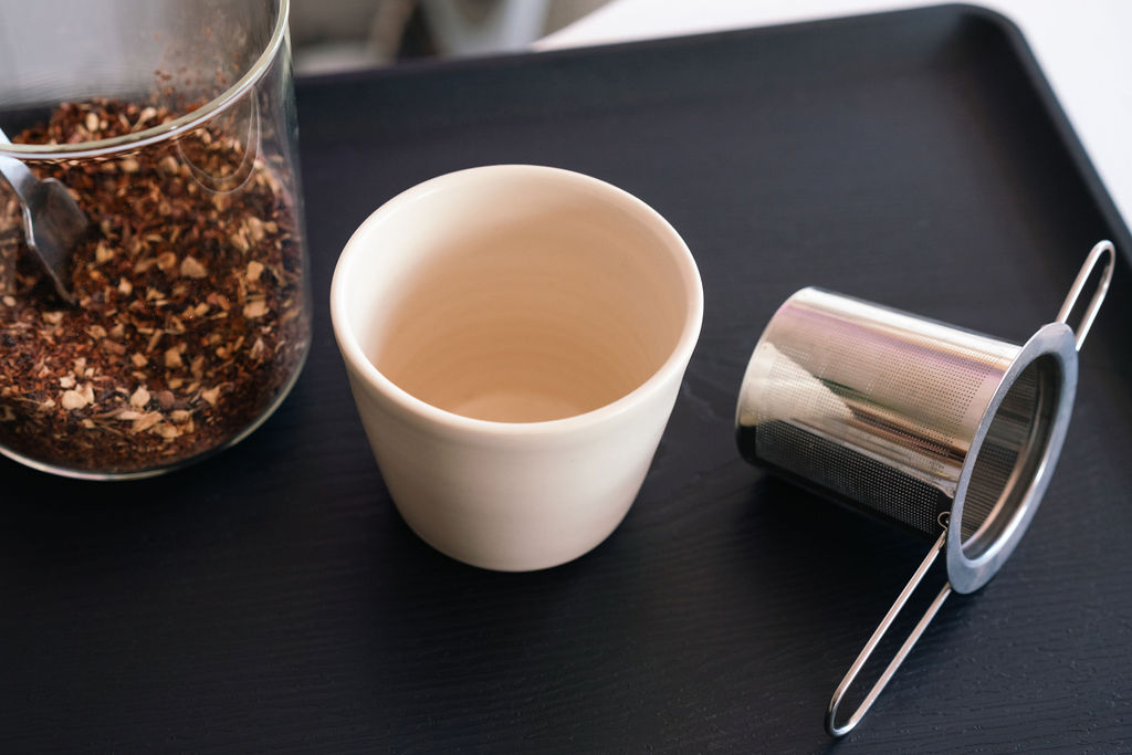 - Organic Big River Coffee, Tazo tea, cream, and sugar.